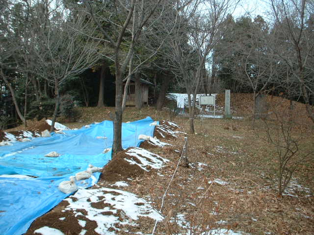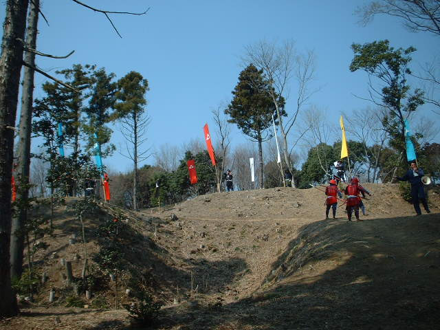 我が車、城館初陣編 その5 時間は既に午後五時過ぎ、日は傾き城館探訪終了を促しているようである。 暗くて写真が写らなくなるまでが我が探訪時間とばかりに最後の一ヶ所へ。 ●杉山城(埼玉県比企郡嵐山町) やはり最近国指定遺跡に指定された杉山城も見ておかねば。 ここも数年ぶりになってしまったので、目の保養をさせてもらう事に。 玉ノ岡中学校西まで車で登り、そこからの再訪である。 んん~!!この土の凹凸が萌えさせてくれる。 日没まで時間がないが、そそくさと回る。 途中で犬を連れて城内をマラソンされている方に出会った以外は人に会わず。 以前はここに木橋を伐採した竹で表現していたが、危ないので取り外したようだ。 下手に遺構をいじられてしっかりとした木橋をかけられるより、この方がいいのかも知れない。 そして本曲輪へいきなり移動。 今の写真と今から七年程前の発掘調査時の写真を並べてみた。 こう見るとすっかり埋め戻されているなっと感じる。 ついでに2003年3月に行われた発掘調査説明会の模様をアップしてみる。 左がその時に置かれていた杉山城の立体模型。 右は虎口の横矢の仕組みを鎧を着た人々を使って説明している所。 まだ今ほど遺構の乏しい場所に興味が無かっただけに楽しめていたような。 つい思い出話になってしまったが、この杉山城は埼玉県が誇る中世城郭と言っても過言ではない。 もし今後中世の城館跡に興味を持つ人が居たら、ここの様に説明もしっかりしている場所から入るのが一番なのだろう。 我が車の初陣はこうして幕を閉じた。 杉山城から鎌倉街道を鎌倉方面に向けてみると、数百年もの間この街道を見届けていたかと感慨にふけてしまう。 こうして目の保養をした所で、次の城館跡の調査に胸を膨らませる儀一であった。 おわり [0回]PR