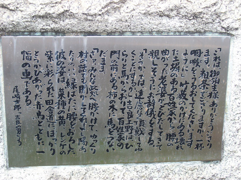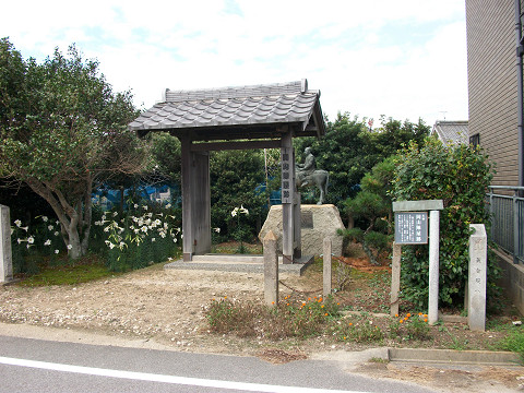 岡山陣屋(愛知県西尾市) 岡山陣屋所在地 こちらも成田様お勧めの場所という事で足を運んでみた。 東条城から目と鼻の先ぐらいの距離なので、歩いてもいける・・・。かも 岡山陣屋へはまたも丁寧な標識があり、案内される。 愛知県は本当に歴史的遺構に対して好意的に案内してくれている。 (でも遺構が喪失している所も多いのも事実) そうこう歩いている内に陣屋跡の特設ステージに到着。 集落の一部にこそなっているが、昔はこの辺りは遺構だったのだろうなっと思いを。 そしてこちらにおわすはこの岡山陣屋の主、吉良上野介様。 忠臣蔵だと悪役顔にされてしまいがちなのだが、こちらの像はまるで仏様のような穏やかな表情であらせられる。 吉良上野介像の台座には民と触れ合う殿様のフレンドリーな一時を記した物語が。 明確な遺構は残っていないが、道の形状にその名残を見つける事ができた。 できたら土塁などがあれば良かったが、ああいうモニュメントがあるだけありがたいと思った方がいいかも。 [0回]