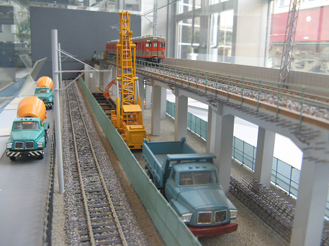 この模型は博物館がある東向島駅が高架工事を行っている所を再現した模型。