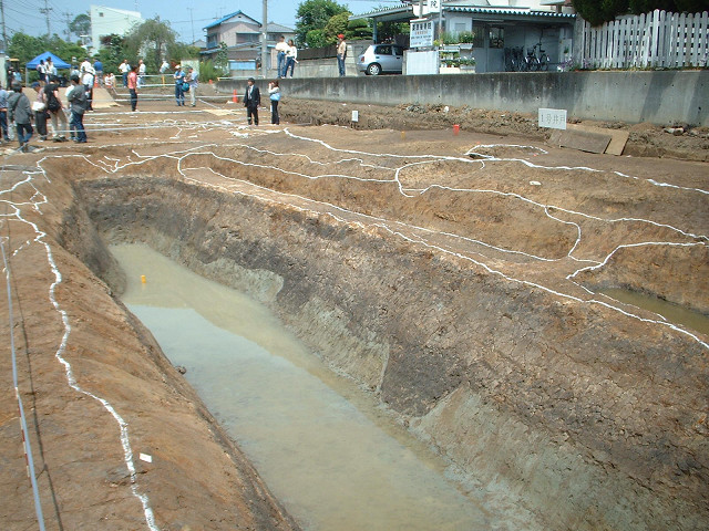 雨は更新の時 今日は休みだったのだが、天候が悪いので過去に更新したページの加筆修正をする。 今回主に更新したのは深谷市付近の城館跡で、書き足らない所やリンクのミスなどを修正していた。 それにしても深谷上杉氏って面白いかも知れない。 管領上杉氏の諸流ながらもドラマがあり、戦国期には北条・上杉(謙信)・武田の勢力に翻弄されてしまっている辺りに力なき武士たちの哀愁を感じる事ができてしまう。 多くの中小企業はまさにこの深谷上杉氏の様に大企業に翻弄されている所もあるので、その辺りが共感もてるのかも知れない。 しかし、読み落としている部分が多かった。 でも読み直して更に歴史の面白さが知る事ができた。 ここで懐かしの写真を、深谷城発掘調査説明会のシーン。 今は駐車場になっており、遺構は埋め戻されてしまっている。 [0回]