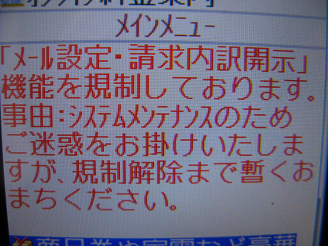 流石にこれはいかんだろう 今使っている携帯電話の料金内訳が、数日間システムメンテナンスと称して見れなくなっている。 もう料金確定から10日以上も経過しているのにまだメンテナンス・・・ 流石に料金内訳もすぐに出せないのでは、徴収する側としてはマズいのでは? (何気にこういう時に限って確定内容が気になる) [0回]PR