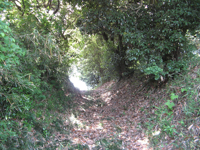 吉田字陣屋東(埼玉県比企郡嵐山町) 埼玉県比企郡嵐山町の吉田地区にもとても興味を惹かれる「字陣屋東」なる小字が存在する。 陣屋・・・陣場同様に中世期では合戦時に軍隊を収容する営舎を指していたが、近世になり大名の住む城郭に満たない役人の詰め所を指す言葉になっている。 今回の吉田の陣屋がどちらかはよく分からないが、末端に「東」と付いている以上陣屋の東側を指す地名と思われる。 という事は西隣りの小字はっというと「字西之谷」であり、その中間に陣屋があったと見るべきか? 目の前にある丘(写真だと森に見える)が目指す字陣屋東である。 田んぼを隔てた北にはかって甲斐の国への街道の名残と言われる現県道11号線が走っている。 そういう意味で見ると先の陣屋の定義からすると、戦中の陣所と見るのが自然か? 字陣屋東の中心を車一台分の車道が南北に貫通している。 さっきの遠景を見てもこの道路の東側の方が陣を構えるのに相応しくも思えるので調査してみる。 この辺りの民家の一部はこの丘陵上に建てられており、特に写真の切り株のある所が土塁に見えてしょうがない。 それよりこの丘陵の上を調べてみる必要があるな。 さっきの土塁に見える高まりより高い所から見てみると・・・やはり土塁に見えてしまう。 故意にこういう形状にしているのか?あるいは本当に陣屋の跡地を利用して家を建てたのか? とても興味深い。 丘の上は藪かと思いきや、数軒の墓地になっていた。 結構上の方は削平されており、墓地造成によるものかと思えるが、同様の墓地を見てもここまで削平されているところはそんなにない。 やはりここには何かあったのだろうか? 丘を東西に跨ぐ里道を撮影してみた。これだけ見ると堀にしか見えない。 でもこの里道もここまで掘り下げているのが気にはなる。 先の切通し状の里道の南は、これまた削平された農地。 確かに農地なら削平されていても不自然ではないが・・・全体的に丘に手が加わったような気してしまうのであった。 お墓越しになってしまったが、丘から麓を見下ろしてみた。 向こうの民家の高さを基準にすれば、3~4階ぐらいの高さはあるだろうか? 場所としても先の甲斐へ続く街道が北を走っており、さらに北に2kmぐらいには元江南町の塩館や常安寺館があり、もしここが陣屋であったとしたらどんな関連があったのか興味が沸いてくる。 そんな事で次の場所へ移動するのであった。 [0回]PR