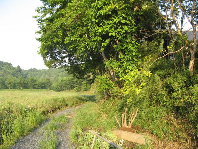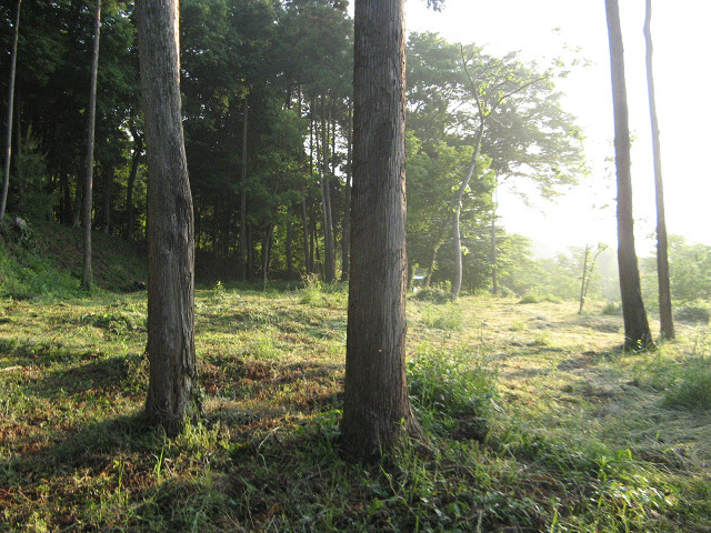 牟礼字新屋敷(埼玉県大里郡寄居町) 埼玉県大里郡寄居町牟礼の字堀の内から歩いてちょっとの所に「新屋敷」という小字がある。 この辺りは他の中世城館資料等ではまったく認識の無い場所なのだが、「堀の内」に続き「新屋敷」とちょっと中世城館跡にゆかりのある小字が残っているのが印象的である。 先の堀の内でも書いた通り、この牟礼地区は高見城から鉢形城への街道の沿線上にあったと思われ、個人的にはちょっと期待している地区でもあるのである。 牟礼地区で信号のある交差点を鉢形城方面へ歩いていくと、なにやら湿地帯が? 一応地図にも緑地として表示されているが、特に名前がない。 仕方ないのでここを仮名「寄居の尾瀬」と呼んで置くことに。 早朝の「寄居の尾瀬」はいたって静か。 こうして朝日の方角を向いていると、とても埼玉県寄居町にいるとは思えない光景が広がっている。 近くに民家があるが、とても良い自然が残されていると思った。 さて、この「寄居の尾瀬」の脇を通過し、目指す字新屋敷はこの奥である。 先へ進んで見ると途中で未舗装の道になる。 調べた所ではこの辺りから字新屋敷」なのであるが・・・ ピキーン!! ふと北側の斜面を見たときに感じ取った、この上に平場がある。 本当は民家脇から行くようだが、強引にこの斜面を直登して馳せ参じる事にした。 ・・・そこにはとても美しい平場があった。 この削平具合をみれば明らかに人の手によって平場が作られた物である。 でも・・・妙に草が刈られて綺麗になっているのが気になる所ではあるが、恐らく昔の住居があったのだろう。 しかもそこからは山間からうっすらと高見城と思われる山まで見える。(写真中央付近) 一応地図で調べてみたら、確かに高見城のある四ツ山であった。 これはわざわざ見える位置を削平したものか?あるいは偶然か? 発掘調査でもすれば分かるのかも知れないが、現時点では分からない。 足元には近年まで使われていたと思われる井戸のような跡まで残っていた。 どう見ても下水道などで使用されるコンクリート製の物で、正確には井戸であるかも分からない。 でもこの辺りは湧水があり、生活するには申し分ない条件を備えているようだった。 ここまで書いて残念ながらブログの写真容量が満タンになってしまったようだ。 一応容量増量を申請してみるが・・・こんなブログに増やしてもらえるか謎だったりする。 なお、先ほどの平場の上にも緩やかながらも何かあったような平場があり、それを囲むように溝があった。 字新屋敷の名は中世の城館跡なのか? これをご覧になって興味をもった方に見ていただきたい所だったりする。 [0回]PR