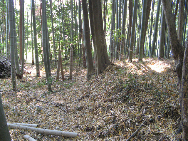 長尾四郎高勝館? こちらも「そこに城があるから」の左馬助様のブログを読んで猛烈に行って見たかった所である。 詳しい事は上記のブログを参照の事で。 確かに「いい形してますね~」という丘がある。 ちょっと民家のまん前を通過するので入り辛かったが、裏の竹山にお邪魔させていただいた。 前の民家も石積みされていて、これも遺構?っと思える節も。 ちょっと登った所で削平地登場。 少々狭いが掘っ立て小屋一つ建てるなら全然申し分ない広さはある。 もちろん更に上に上って行く事に。 こちらもまったくの自然地形ではなく、ある程度人の手が加わった痕跡があり。 それにしても左馬助様もよくここを発見なさったものだ。 一応作りかけのような堀切もあり、本当はここが土を盛られてさらに深くなっていたのかも知れない。 明確な遺構はこの辺りまでで、北に尾根は伸びているが全て自然地形であった。 あとこの辺りの遺構が余りにも良いので、思わず西の竪堀状の道を撮影し忘れてしまった。 中城も良かったけど、ここもいい意味でテンションを上げさせてもらった。 そんな事で次の場所へと移動するのであった。 [0回]PR