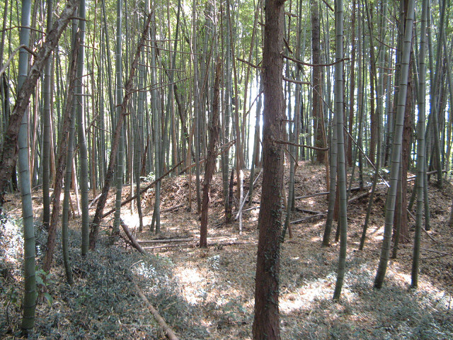 長尾四郎高勝館? こちらも「そこに城があるから」の左馬助様のブログを読んで猛烈に行って見たかった所である。 詳しい事は上記のブログを参照の事で。 確かに「いい形してますね~」という丘がある。 ちょっと民家のまん前を通過するので入り辛かったが、裏の竹山にお邪魔させていただいた。 前の民家も石積みされていて、これも遺構?っと思える節も。 ちょっと登った所で削平地登場。 少々狭いが掘っ立て小屋一つ建てるなら全然申し分ない広さはある。 もちろん更に上に上って行く事に。 こちらもまったくの自然地形ではなく、ある程度人の手が加わった痕跡があり。 それにしても左馬助様もよくここを発見なさったものだ。 一応作りかけのような堀切もあり、本当はここが土を盛られてさらに深くなっていたのかも知れない。 明確な遺構はこの辺りまでで、北に尾根は伸びているが全て自然地形であった。 あとこの辺りの遺構が余りにも良いので、思わず西の竪堀状の道を撮影し忘れてしまった。 中城も良かったけど、ここもいい意味でテンションを上げさせてもらった。 そんな事で次の場所へと移動するのであった。 [0回]