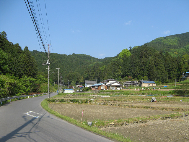 両側から山が迫ってはいるが、比較的広い場所で一部が耕地になっている。