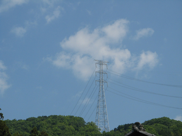 ふと空を見上げてみれば五月晴れの空に鉄塔。