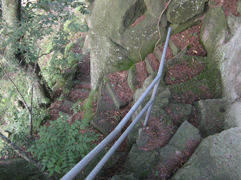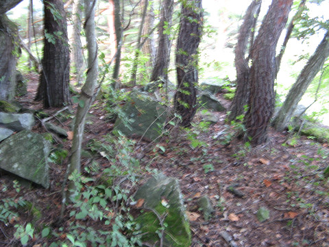 内堀城(長野県佐久市) 内堀城所在地 内山城の西に内堀城という砦があるという。 周辺の内山城や平賀城に比べて標高が低く、丘城と呼ぶのが相応しい地形である。 五本松城撤収戦より少しの休憩をして、気持ちを改めこの城を訪ねるべくやってきた。 ・・・のはいいが、周囲は物凄い藪になっていて道が見当たらない。 こういう所って比較的神社なんかが山頂に置かれていて結構訪れ易い所があったりするのだが・・・ この城にはそんな甘えは通用しないようだ。 藪漕ぎする気にもならなかったので、次の城に行く事にした。 もしかしたら国道に面した岩山からいけるかも知れないが・・・ 先日の撤退から3週間経って、再び内堀城へ来た。 今回は南端にある岩から登って行ってみようと計画している。 ここには神社関連の設備があり、城の尾根へのアクセスが容易そうだからである。 先日は何故かここの存在が気付かなかったが、帰る際にこの場所を見つけて目星をつけていた。 ここを上手に利用すれば夏場でも探訪できるかも知れないと個人的には期待している。 窮屈そうな石段を踏みしめて上がっていく。 これが岩の上にあればしめたもので、そこを使って内堀城にいけると見ている。 っと思っていたら考えが甘く、中腹ほどで本堂が現れて道は途絶えた。 この背後の岩は絶壁だしどうやっていけるか・・・ そういえば途中で行けそうな場所あったな。 ここから城へのアクセスを試みて見る。 ちっと登りづらかったが、なんとか上がれた。 ちょっと上がってみた所で誰も気付かないような所に石祠があった。 ここに気付いてくれる人はそんなに居ないだろうな。 って事でこの石祠の脇を通らせてもらい、上へ上がっていく。 すると随分と広い場所に出た。 ここが城跡?いやいや、内堀城はもっと奥の山の方だし。 自然地形にも思えないほどここには広まりがあり、城の遺構といわれても疑いないような所だ。 この勢いで内堀城へっと思ったら、絶壁と藪のコンビネーションによって進路は塞がっていた。 流石にここを抜けるのはリスクが大きいので諦めた方がいい。 他もそそり立つ岩を乗り越えるには明らかにロッククライミング技術が必要で、今の自分にはそれがない。 残念だが、今回も撤退のようだ。 でも先ほどの平場はこれだけ眺望効くので、高さは無いにしても物見には使えるかなって程度。 今回はこの謎の平場の発見までで、リベンジを終了とする。 もし行くとすれば藪の枯れる冬場になる。 [1回]PR