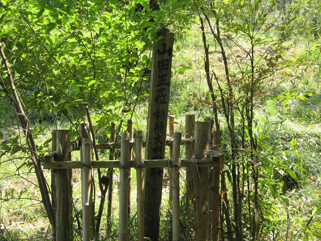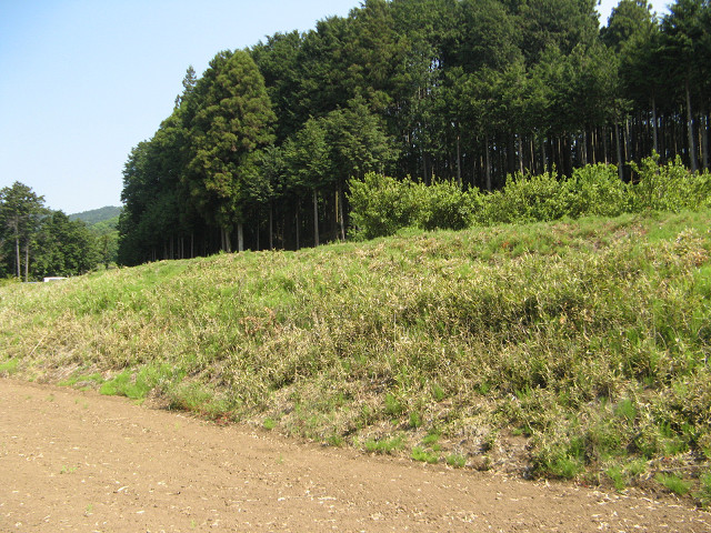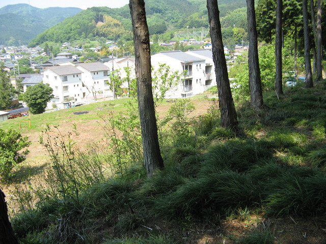 山田屋敷 今回はちょっと小川町から外れて近くの東秩父村へ。 以前から訪問した事の無かった上田氏家臣である山田氏の屋敷跡へ。 安戸地区の中心付近に「上品(じょうほん)寺」があり、屋敷跡はこの付近らしいのだが・・・ 所在地が曖昧だったので、当サイトとリンクしている「そこに城があるから」の左馬助様が調査をなさっているので、参考にさせていただいた。 どうやら東秩父団地というマンションの付近にあるようなので、早速「山田屋敷」で聞き込みしてみた。 すると最初に尋ねた方がズバリ現代の御当主様であらせられた。 お忙しい最中に関わらず、件の標柱までご案内いただいてしまった。 左馬助様のサイトだと綺麗に標柱が撮影されているのだが・・・今回はちっとフラッシュもつけなかったので大変見づらい。 御当主様のお話によれば、以前は緩やかな傾斜だったのだが、農業器機の機械化によって平坦になったとの事。 という事はここは屋敷跡?それとも屋敷が傾斜に建てられていた? 答えはその奥の茂みにありそうだ。 御当主様の許可をいただき、奥へ侵入する事に。 近年植林されたと思われるその杉の中は、僅かながら削平されたような雰囲気があった。 だがこの先は「関係者以外立ち入り禁止」の標識があったので、やむを得ず引き返した。 御当主様のお話によれば一番上の岩の付近より板碑(年号は聞いたが失念)があるそうだ。 ここまで上がると比較的周囲が見渡せる。 結局どこまでが屋敷跡なのかよく分からぬまま終わった印象があるが、山田屋敷の調査は今回これで終了。 再び小川町に戻る事にした。 参考サイト:そこに城があるから [0回]PR