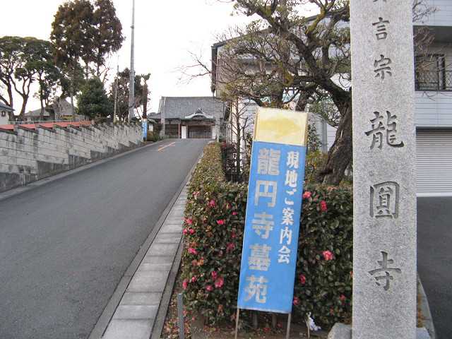 市川氏屋敷 ●市川氏屋敷(埼玉県入間市) 屋敷の跡地は龍円寺にあったとされる。 その南側は霞川が低地を作っており、屋敷は加治丘陵の一部を利用した所にある。 先ほどの入口から登って振り返ってみる。 ちょっと標高が高く、割と遠くまで見通せるような感じである。 龍円寺の本堂は丘の中腹に建っている。 なにより気になるのはこの龍円寺の裏山である墓地であろうか。 丘は表面を墓地に塗り替えられてしまっているが、独立した丘の形状は残している。 近くは古道の枝道が加治丘陵を越えており、この丘はその枝道の南を遠くまで見通せる。 何気に気になる地形だ。 関東にやってきた徳川家康の家臣たちは中世期の館跡をそのまま屋敷に利用したケースが多く見られる。 当屋敷もその中世期の館跡を利用した可能性は考えられる。 しかし、現状がこれではもはや地表から調べるのは難しい。 [0回]PR