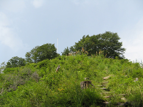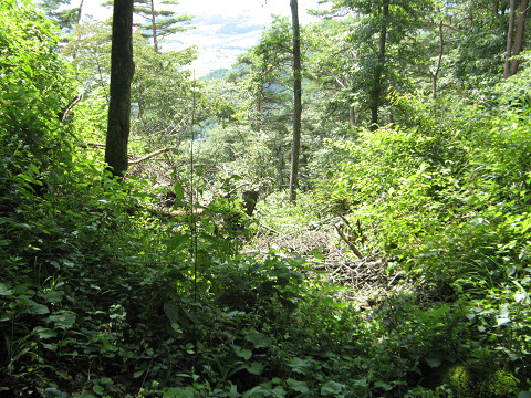 平尾富士砦(長野県佐久市) 平尾富士砦所在地 平尾山には平尾城(別名秋葉山城)と平尾富士砦の二つの城郭があるという。 最初スキー場化されているとの事で行けるか心配だったが、行くだけ行って見た。 場所は上信越自動車道の佐久平サービスエリアの北にそびえる山なので、スマートICを利用できる人はもう着いたようなもの。 駐車場豊富なので車の停め場所に迷うことないのが良い。 平尾山公園では行った日昆虫のイベント開催中だった。 虫は触りたくも無いが、興味のある人にはたまらないイベントなんだろうな。 流石に季節は夏なのでスキー場に雪はない。 その代わり斜面をすべり降りるソリの様な乗り物がお子様方に大人気。 ちなみにゴンドラは片道350円で自分の感覚では高め。 近くの売店でソフトクリームが売ってたので、乾いた喉をそれで潤わせ、その高めのリフトに乗ることにした。 そんな事でリフトに搭乗中。 足をブラブラさせられるので足首を軽く回したりして、徐々に上がっていく景色を楽しむ。 なんか山頂付近に雲が出てきているように思えたりも・・・しかもゴロゴロ言っているし。 平尾富士砦へ行くにはもう一回リフトに乗ると楽。 しかし、再び350円の運賃がかかるのがきついかもな。 そういえば乗る時に係員の人に「停電になったらリフトは止まりますのでそのまま待っていてください」と言われている。 そういえばさっきゴロゴロと雷みたいな音がしていたが、そういう事なのか。 このリフトに乗りながら雨に打たれるのは・・・キツイ。 そうこうしている内に一番上へ。 「雷が鳴っているので早めに戻って下さい」と係員の方に言われ、速攻で平尾富士へ向かう。 今のところは日差しはあるが、北の軽井沢方面からは雨雲らしき雲が迫っていた。 まったく麓から登るに比べたらだいぶ時間短縮されているので、急いで上っていく。 しばらくすると堀切が現れる。 平場だけでもあればと思っていたので、堀切の出現は嬉しい。 でもそろそろポツポツと雨粒が頭を穿ちは始めたので、急がねば。 平尾富士砦の平場(本曲輪) 結構削平されており、この地方の狼煙台のレベルはこちらとしてはかなり豪華な遺構。 平尾富士砦からの眺望は佐久平を一望できる絶景。 雨がポツポツとしてなければしばらく眺めていたのだが・・・写真を何枚か撮って撤収。 ちょっと降りた所で再び振り返る。 この様に周囲の木は伐採されている為、見晴らしは良かった。 段々降りが激しくなってきたので、やむを得ず非常事態用の携帯カッパを装着。 安い携帯カッパなので一回ポッキリなのだが、濡れて降りるよりかはマシか。 かくして雨のお陰で途中で平尾城に立ち寄る予定が立ち寄れなくなってしまった。 さてさて、今日は雨が降り始めたし・・・どうするか。 [0回]PR