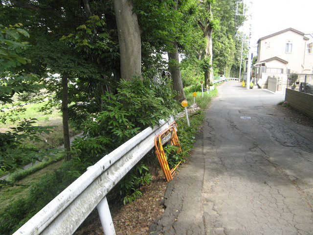 水子陣屋(埼玉県富士見市) こちらも数年ぶりの水子陣屋である。 水子陣屋の上の台地は、今も畑があったりして実にのどかな光景を残している。 自分としてはこういうのどかな光景の中、城館探訪するのが好きなのだが・・・ 台地の末端部分を通る道。 水子陣屋があったであろうこの台地の末端部分は住宅が建ち並び、遺構の残っている気配が感じられない。 台地の上から北東方面を眺めた所。 木々が視界を遮って見通し悪いが、比高差5m程のこの高さがあれば新河岸川沿いの眺望も良かった事だろう。 「城ノ腰」と呼ばれる地域は、残念ながら国道254バイバス(浦所バイバス)が通過しているので削られてしまっている。 最近お気に入りの『迅速測図』を見てもこの辺りは民家が密集していた所で、遺構はあまり期待できない様子だった。 都市化が進むと遺構の喪失した城館跡が多くなってくる。 気分的には萎えてくるけど、残っている遺構を見た時の喜びは大きくなる。 そんな事で段々調査地域が都心に近くなるが、調査していきたいものである。 [0回]PR