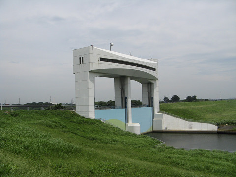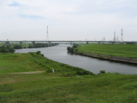 新座郡の城館探訪 ・・・を今日まったりやってきた。 新座郡と言っても今日は朝霞市を回るのでいっぱいになってしまった。 下内間木の城館まがい地を巡ったついでに朝霞水門を見てきた。 この辺りは荒川(外川)と新河岸川(内川・渋川)が乱流している所で、新河岸川は本来ここで荒川と合流して河口付近では隅田川となっている。 いまでこそ水門で閉ざされているその川も、かっては水運で多くの船がそこを通過していたというのが感慨深い。 この水門付近に来たら急に風が強くなって、日差しも出てきた。 朝霞水門付近の旧新河岸川(右手前)と荒川(左)の合流地点。 今でこそすっきりとしたストレートな川になっているが、かってこの辺りは川が複雑に乱流しており、中世期も絶えず洪水が起こっていたのだろうなっと思いながら川を見ていた。 ちなみに奥に架かってる橋は東京外環自動車道と国道298号線が併用している幸魂大橋。 改めて朝霞水門を別の角度から眺める。 間近に行くまで分からなかったが、堤防の高さから4階ぐらいあるので、結構高い。 あのてっぺんの部分を展望台として開放して欲しい。 って感じで城館探訪の合間に川を見て涼んでいたのだった。 でも思ったより日差しが強くて日焼けしてしまったのであった。 [0回]PR