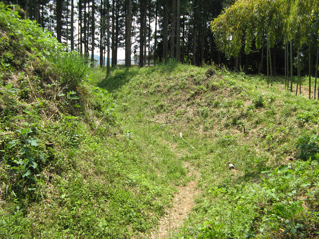 中城(埼玉県比企郡小川町) ここまで来たからには中城も見たくなり、数年ぶりに訪問。 北側にある陣屋沼より中城を望む。 東方に伸びる舌状台地を上手に利用した城で、小川町の市街地でありながらこの保存状態は嬉しい所。 一応、陣屋沼公園利用者であれば車が二台分駐車できる。 この日も晴れていたのだが、利用している人が居なかったのでちょっと使わせてもらった。 中城は外周をさらに土塁が囲っている城で、この手の込んだ作りもまた見ごたえがある。 やはりまがい地ばかり周っていると、たまにこういう良質の遺構が見たくなる。 数年前に訪れたときにはこんな看板無かったような? 中城の遺構というより仙覚律師の居住地である方が有名のようで、中城より目立った文字で書かれている事が多かった。 一瞬「場違い?」と思った階段だが、遺構の保存を考慮すると最善策とも思える。 確かに多くの人が歩くと遺構が磨り減ってなくなってしまうから。 土橋などの設備が見られない所を見ると、現役時代ここは板橋でも渡して通行していたのだろう。 流石に橋になるとメンテが大変なのでこういう階段で対応したという感じ。 相変わらず本曲輪のテニスコートは健在だった。 流石に平日なのでテニスをプレイする人の姿は見られない。 前回も見なかったのでここを利用している方が居られるのかは分からない。 中城から小川の街中を望む。 こう見るとこの辺りを治めるのに丁度いい立地条件だったのがよく分かる。 これより先は急落しており、街中になる。 久々に行った中城であったが、比較的草も刈り取られていて見学し易かった。 そんな良い遺構を見て、テンションを高めたのであった。 [0回]
