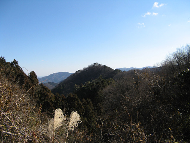 南牧の城館跡探訪、その後 笹の平砦後は標高の高い城館跡が多いので、安全を考慮して遠景だけの撮影となった。 ●布山城 笹の平砦より西にあり、南牧村役場の北にある山城であるが、麓から見てもかなり標高の高そうな城。 そもそも今回は聞き込みをするために来たのに、この城の登り口を聞くのをすっかり忘れてしまっていた。 ●城の腰の砦 砥沢城に隣接する山に築かれた砦で、所在地からして東方への視界が悪い砥沢城の補助的役割を果たす砦と言える。 ここと布山城の間は蝉(狭水)の渓谷という深く切り込んだ谷があって、ここの景観を見るのも楽しかった。 ●砥沢城 この辺りで最も遺構の規模が大きい城で、この周辺の城館跡を取りまとめる主要城と思える風格がある。 南牧川と渋沢川に挟まれた細尾根上に築かれた城で、東は麓の砥沢地区から最上部は林道の付近まであるようだ。 主郭に送電鉄塔が建つ予定であったようだが、歴史ある城郭があるので郷土の皆様が頼んで20mずらして現在の位置に作られたという経緯があるそうだ。 ここは範囲が広いので時間を多めに取って探訪するようにしたい所。 ●羽沢の砦 この辺りの城館跡で比高差が少なく、最も簡単に訪問できそうな場所である。 元小学校の辺りがその砦跡で、堀切があるらしいのでここは訪ねようと行ってみた。 学校(写真中央左の白い建物)は今は生涯学習センターとなっており、元校庭は駐車場になっている。 そこの職員さんに城の事を訪ねたら、以前群馬の城郭研究の第一人者である山崎一先生と山城の調査に同行した事があるそうで、山城の事を熱く語ってくださった。 もちろんこの周辺の山城についても詳しく、閉館時間間近の忙しい時間にも関わらず色々とお教え下さった。 今度行く時には時間のゆとりを持って行きたい所だ。 そんな事で遺構だけ見に行ったが・・・ ちっと写真がブレてしまったが、屋敷跡としての標識があるのでその先に行ってみた。 しかし、途中で道が途絶えて行き方が分からなくなってしまっていた。 周辺も暗くなり始めていた事もあって、遺構を探すのを断念した。 下から堀切推定場所を見るが・・・これが堀切? ここからの探訪はまた次回に持ち越しという事に。 ●鷹ノ巣城 こちらは南牧川を下って下仁田の中心街から見える素敵な城。 信号待ちでヒマなので、片手間に撮影したので写りが悪い。 この遠景をみると、この城もきつそうだが訪ね甲斐がありそうな雰囲気がある。 かくしてほぼ遠景のみで今回は終わったが、まだ奥にある熊倉城・熊倉東城・星尾城は遠景すら見ていない。 他にも城の推定地は幾つかあるようなので、またの機会に南牧村に赴く必要がありそうだ。 [0回]