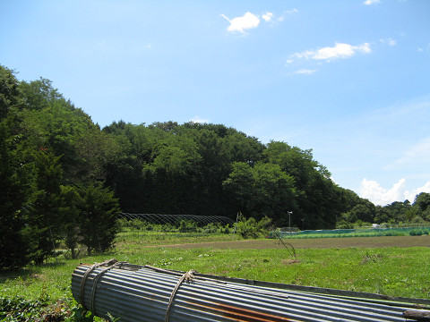 鳥坂城(長野県佐久市) 鳥坂城所在地 鳥坂(とさか)城は中央図書館などの併設されている牧場の東側に位置する城である。 南は志賀川と西は平尾用水となった谷にはさまれた地形で、それを利用した城のようだ。 現地はというと・・・いたって畑になっている。 遺構らしき所といえばこの堀跡と伺われる窪地であろうか。 舌状台地の先端である南西方向を区切るようにこの窪地は延びているので、堀切の一種であったと思われる。 ちなみにここもまた見晴らしは良い。 東を見ればかなりの要害に見える閼伽流(あかる)山城が見える。 ・・・この山容を見るととても今日行く気になれなかった。 手持ちの地図によれば山腹の千手観世音堂まで道があるようなので、それを利用すれば探訪できるかも知れない。 閼伽流山城を見てもそうだが、凄い所に城を築いたものだ。 ちなみにこの山を上信越自動車道がトンネルで貫通している。 それにしても信州は景色がいい。 改めてこうして訪れられた事を嬉しく思ったりも。 [0回]