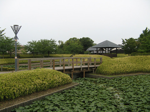 難波田城(埼玉県富士見市) 難波田城は富士見市で最も保護されている遺構で、史跡公園として整備されている。 実はこの城、今回含めて三回ほど訪れているが、一回も晴れた日に来た事がない。 たまたまであると思うが、他にも雨にしか訪れた事の無い城もあるので似たようなものか。 「難波田城公園」は南側から入ると、旧家の立ち並ぶ何とも凄い雰囲気に包まれる。 旧家はあまり興味がないが、そののんびりとした光景は結構好きかも知れない。 折角来たのだから資料館で資料を・・・と思ったら、今日は月曜日だったので休館日。 ここの資料館はたまに面白い資料が見られたりするから期待していたのだが、残念なり。 蓮の池にポツンと花開こうとしている蓮の花。 行ったのが六月上旬で、これからどんどん花開いていく事であろう。 ちなみにこの付近の小字は蓮田で、その名残を残していると言える。 最初見たときには「結構小さな墓石だな」って思っていたが、後で資料を調べて見ると十玉院の名残であった。 十玉院はこの辺りでは有名な修験場で、この富士見市から志木市に掛けての中世歴史を調べるとこの十玉院の歴史にぶつかる。 そしてこれが史跡公園として整備された難波田城の今の姿。 水堀などは発掘調査の結果を基に再現されているので、それなりのよさはある。 本曲輪付近は残念ながら大部分を民家が占有している為、一部しか公開されていない。 それでも石碑を置いたりして、本曲輪に来たぞという達成感は味わえるかも。 復元された木橋もある。 これも発掘調査の結果、橋を支える柱が見つかった為に架橋された。 復元遺構ぐらいじゃないと橋はメンテナンスが大変なので滅多にお目にかかれない。 他にも食違い小口や木戸(城戸)など色々と整備されているので、中世城館初心者には勉強になる場所だと思う。 他にも難波田城祭りにて火縄銃の実演もやっている。 過去にそのレポも書いた事があるので、そちらも拝見されたし。 → こちら 他にも数ヶ所城館遺構と思われる所が富士見市にあるが、未だに調査していない。 後日再び訪問して調査してみねばならないな。 [0回]