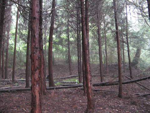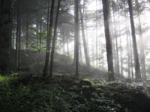 平賀城(長野県佐久市) まだ霧の晴れぬまま、平賀城を目指す事にした。 雰囲気的にこのまま晴れそうなので、問題なさそうである。 一応平賀城方面を撮影しているが・・・まったくわからん。 地図を見てより楽に城に探訪できる方法を考える。 すると北麓の正安寺の脇に林道がある事を発見し、なるべく上まで車で行く事にした。 こういう目印もない道だと車のカーナビが絶大な効果は発揮する。 今度ポータブルGPSでも欲しいものだ。 って事で平賀城に一番近いポイントに到着。 林道にいながらにして、既に堀切が見えるのが嬉しい所。 ちょっと入るだけで曲輪の出てくるこの幸せ感。 それにしてもよく削ってあって、まがい地巡りばかりの自分にはたまらない遺構である。 しばらく歩いていくと、長野県教育委員会お手製の標があった。 それによると搦め手(裏口)だったようで、そこにはしっかり削平された腰曲輪があった。 なんというグレイツな道。 頭上は本曲輪があり、一歩でも道を踏み外せば転落する。 さすが搦め手だけあり、守りは堅い。 そこからすぐに本曲輪にたどり着いた。 依然として霧がかかっていてはっきりしてないが、見晴らしは良さそうな場所である。 しかも東屋まで設置されているゴージャスさ。 埼玉県の山城でも数城しかない東屋がこんなあっさりと置かれているあたりに長野県のレベルの高さを感じさせられる。 (ただ単にハイキングコースなのかも知れないが) しかも厠付きという!! だが・・・ここで用を足すにはちょっと出てきそうで怖い。 東屋(寝床)があり、厠(トイレ)ありと来れば水の手を完備すれば城で生活できそうだ。 石碑および解説板は三の曲輪にある。 大手口から来たらここで感動を味わうのであろうが、こちらは先ほどの厠ですでに感動させていただいている。 この先にも遺構があるのかも知れないが、戻ってくるのが億劫になりそうなのでこのまま搦め手に戻る事にした。 段々霧が晴れて、朝日が城内を照らすようになってきた。 最初霧が出ていてどうなるかと思っていたが、霧越しに照らされる朝日がなんとも美しく見えた。 その幻想的な光に照らされて、城の遺構がより美しく感じられてしまうのであった。 ちなみにこちらが晴れた平賀城。 林道が設置されていてくれたお陰で楽々城館探訪させてもらった。 場所 [0回]