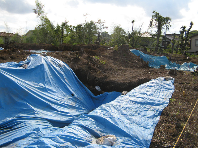 多門氏館(埼玉県富士見市) 多門(おかど)氏館は中世期の館跡に徳川氏の旗本多門氏が住んだことから因む名前である。 以前は何故か木が生い茂ってるという理由で撤退していたのだが、やはり訪問していないのは気がかりだった。 そこで今回の訪問となった訳である。 前は森だった多門氏館が、綺麗に伐採されて発掘調査されていた。 なんのめぐり合わせか?館跡は今新たなる真実を求めて掘り返されていたのである。 堀はしっかりと従来の姿を取り戻しているようだったが、残念な事にブルーシートが被っているので中が伺い知る事ができなかった。 でもこれを見るだけで結構深い堀のようである。 館跡内部もしっかり発掘されており、幾つかの柱穴が顔を覗かせている。 中世期の屋敷は基本的に掘立式であり、家の柱を建てるのに当然穴を掘っている。 この穴のお陰でその館跡にはどの位の規模の屋敷が建っていたか、垣間見る事ができる。 他のサイトでは木が生い茂っている写真が多かったが、これを行った時には見事な見ごたえがあった。 本当は発掘調査をされている調査員の方に話を伺いたかったのだが、忙しそうに動いておいでだったので声をかけるのを控えた。 後日同地を再訪問された「そこに城があるから」の左馬助さんの話によれば、住宅開発による発掘で遺構は喪失してしまうとの事。 確かに中世期の館跡なら液状化現象の心配はほぼ無いが・・・できたら後世に残して欲しい遺構の一つでもあった。 この日は心残りが無いように、徹底して撮影してきた。 せめてこちらの堀は残して欲しいものだ。 [1回]
