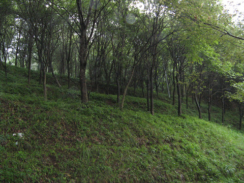 内山古城(長野県佐久市) 内山古城所在地 内山城に来たからには内山古城にも行っておかねばと思って行ってみた。 『佐久市志 歴史編(ニ) 中世(以後市志と呼ぶ)』によれば、この内山古城本体より「沖の入」と呼ばれる沢に石積があるらしい。 うーん、流石にそれをくまなく探していたら、今回の探訪における体力と時間が激しく消耗するのでパス。 ひとまず古城本体に行く事にする。 内山城から内山古城への道は比較的楽な道があり、内山城探訪のついでに立ち寄るのに丁度いい感じである。 多少のアップダウンはあるが、特に気にしない程度なので助かる。 市志に掲載されている地図の場所に行くと・・・確かに平場って言えば平場に見えるが・・・ 削平のされ方も甘く、南北朝期における山城を彷彿させる作りである。 つまり長期戦ではなく敵が消え去るまで籠もるという、まさに「詰めの城」と言える。 さて、ここまで来たのだから、このまま稜線上に所在する五本松城も訪れる事にした。 かくして地図をよく見直し、五本松城の方角へ歩いていった・・・。 [0回]