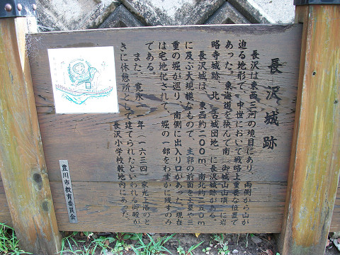 長沢城(愛知県豊川市) 長沢城所在地 長沢松平氏は三河国宝飯郡長沢の出で、埼玉県とは徳川家康の従兄弟の子である松平康直が武州深谷城に一万石で入城している事でゆかりがある。 では早速行ってみようとしたら・・・思い切り国道一号線で交通渋滞に巻き込まれ、予想以上に時間がかかった。 長沢城内は国道一号線が貫通してしまっており、その部分は破壊されている。 しかしながらその名残は残っており、南側に突き出た尾根を利用した城であると分かる。 破壊された尾根の一角には長沢城碑があり、今は石蓋で閉ざされた井戸もあるようだ。 移動してこちらは旧東海道。 長沢城は御殿としても使われたようで、右にある長沢小学校はその跡地に建てられたという。 長沢小学校の法面には長沢城に関する解説板があり、付属している地図には幾つかの堀に囲まれた長沢城の姿が描かれている。 もっとも城らしい面影を残す場所はこのお堂の辺りになる。 お堂の背後には国道1号線が走っており、風景に似合わず車の走行音が絶えず聞こえてくる。 この辺りには手を加えられたような跡が残されており、城の一角として使われた痕跡が残されている。 もうちょっと調べたかったが季節柄で蚊が大量にまとわりついてきたので、この場は撤退。 最後にコンクリート橋なのに名前が「土橋」。 ツッコミが入りそうな名前だが、以前は本当に土橋だったのかも知れない。 近くには御殿の名残を残す「御殿橋」も架かっている。 [0回]