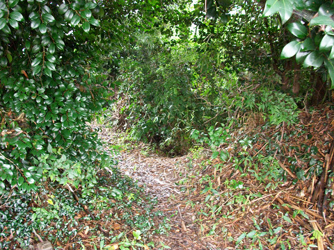 竹谷城(愛知県蒲郡市) 竹谷城所在地 竹谷(たけのや)松平家は松平十八家の一つで、松平家清が天正十八年(1590)に今の埼玉県本庄市の雉ヶ岡城に一万石を与えられた。 宝飯郡竹谷の地は南を三河湾に面しており、山の斜面に有るため海を見下ろす事のできる住み良い場所である。 それが内陸の雉ヶ岡城に移されたというのはだいぶ環境が変ったと思える。 そんな竹谷に今回訪れてみた。 竹谷城の場所は大体分かっていたが、どの辺りにあるのかは具体的に把握していなかったので探すのにちょっと時間がかかった。 おそらくはこの丘になっている所だろうと目星をつけていたが、後日調べてみて正解だと分かってほっと一息。 この辺りの道は狭く、車を停める場所に困ったので某ショッピングセンターに停めさせてもらった。 では早速内部の状態を調べにいこう。 北側に道があったのでそれを通っていく。 一応削平された腰曲輪のような部分にたどり着いた。 比高差が10mぐらいしかないので楽々行けるようだ。 少々分かり辛いが虎口のような場所もある。 着いたそこは栗畑(?)であった。 もっとも藪か民家に比べたら調査しやすので助かる。 そんな事で周囲を調べてみたものの、地形では一番高所にあるものの、堀などの遺構は見受けられなかった。 だが、端部には僅かながら土盛(土塁?)もあるようである。 変ってこちらは南側の光景。 フェンスに囲まれているところがあり、ここは調査するのは控えた。 後でこの場所をネットで調べたら石碑もあったようだが、今回はそれを見逃していたようである。 城とは直接関係無いが道路脇に朝顔が咲いていたので記念撮影。 でも朝を過ぎても咲いているので昼顔か? 青紫の良い花を咲かせていたのでちょっと見入ってしまったのであった。 [0回]