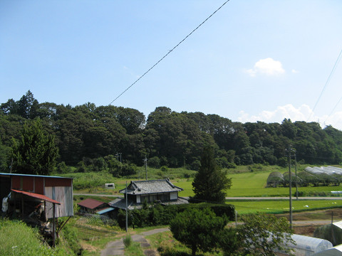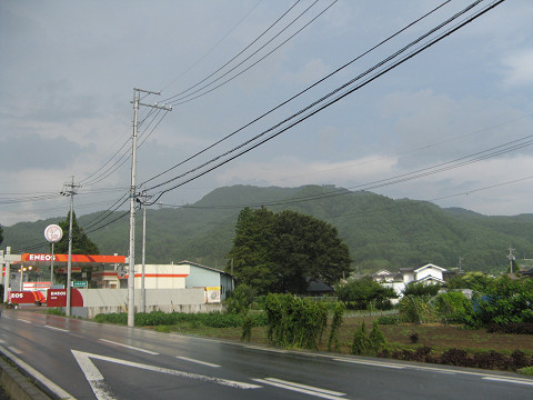 白岩城(長野県佐久市) 白岩城所在地 軽井沢から流れてきた湯川が削った斜面を利用した城で、別名平尾氏城とも呼ぶとか。 雨が結構降ってきたので、傘をさしながらも平野部の城館めぐりと行く事にしたのであった。 (写真は後日撮影した白岩城遠景) 平根小学校付近で県道が不自然なカーブを描いている。 これも白岩城の名残? 白岩城は現在殆どが民家・耕地・学校敷地となっているので、明確な遺構は残されていない。 やはり歴史的に不明な城館はよほど凄い遺構が無い限りは消える事が多いものだ。 平根小学校校庭、夏休みでかつ雨が降り始めた事もあって、校庭には人一人も居なかった。 それにしてもどんどん降りが激しくなってきたような。 学校より南に行くと白岩城の端部に着く。 この道もかって堀を利用した切通しだったのだろう。 本当に降りが激しくなってきたので、車に乗って早々に撤退した。 ここは石碑もなく、本当に人々から忘れ去られそうな城であった。 [0回]